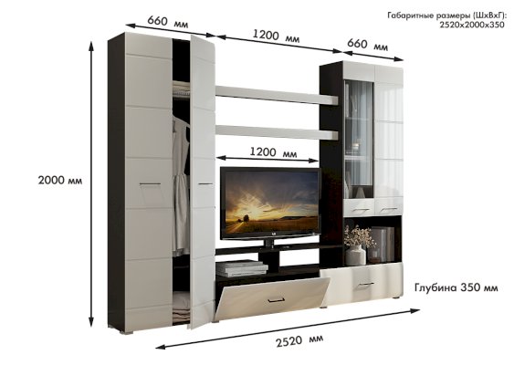 Размер ниши под ТВ (ШхВ): 1200х895 мм
