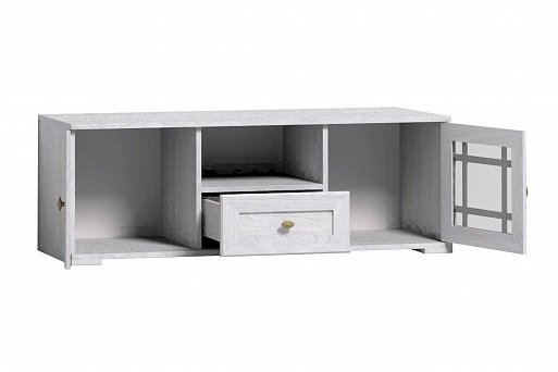 Неглубокая Тумба ТВ в классическом стиле позволит аккуратно разместить в гостиной всю видео и аудио аппаратуру. Центральная ниша шириной 370 мм. Выдвижной ящик (глубиной 350 мм, высотой 120 мм и шириной 365 мм) на шариковых направляющих можно не устанавливать, чтобы увеличить размер ниши в высоту. Если нужно поднять телевизор повыше, используйте дополнительный модуль - Подставка Sherlock 17.