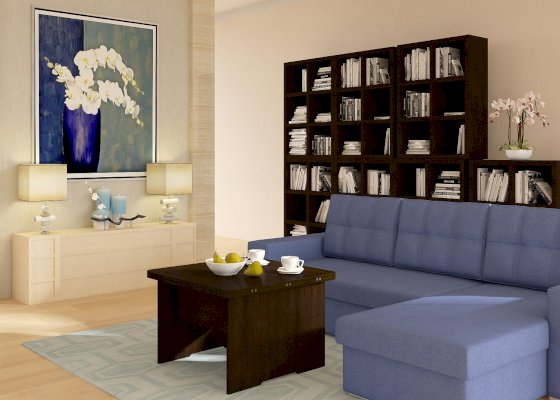 • Функциональность. Купив стол-трансформер потребитель получает сразу два изделия: небольшой журнальный столик и полноценный обеденный стол на 6–8 человек.