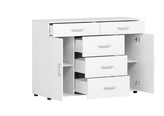 Среди комодов линейки Вега модель К-03 самая функциональная. В ее конструкции предусмотрены 5 выдвижных ящиков и две закрытые ниши с полками, поэтому К-03 идеально подойдет для гардероба.