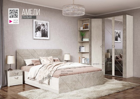 Амели спальня в стиле ар-деко. Она роскошна и сдержанна одновременно. Спокойная цветовая гамма, с имитацией фактуры шелковой ткани и камня, подойдет во многие интерьеры.