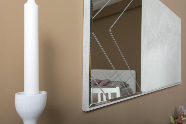 Фрезеровка на МДФ деталях и зеркалах подчеркивает форму ручек.