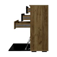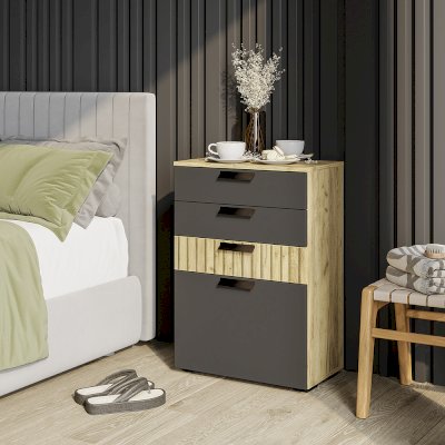 Гостиная "Мишель" - это модель с универсальной конструкцией для современного дома. Фасады в глубоком оттенке "графит" будут отлично контрастировать со стенами в нейтральных или насыщенных холодных тонах. Корпус и поверхности, выполненные в цвете "крафт", хорошо гармонируют с фотопечатью, имитирующей деревянные рейки.