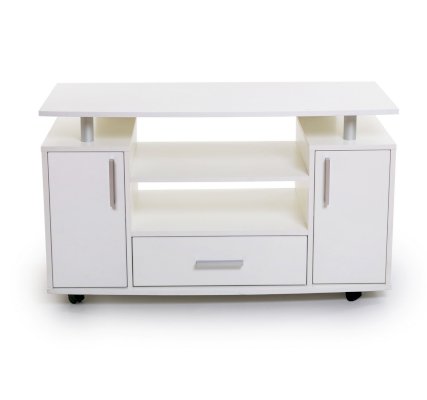 Удобная телевизионная тумба с открытыми полками для аудио/видео-аппаратуры, закрытыми полками и вместительным выдвижным ящиком.