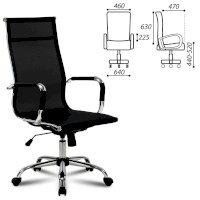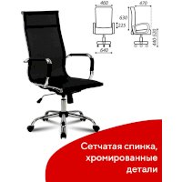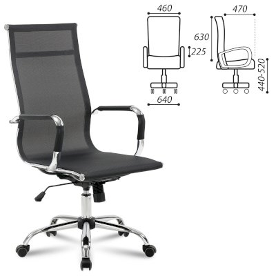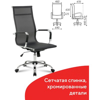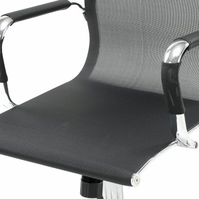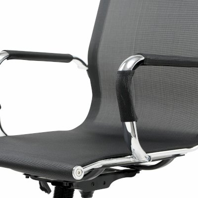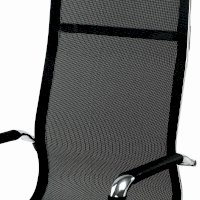 Кресло выполнено на основе хромированного металлического каркаса с прочной сеткой. Подлокотники со съемными противоскользящими накладками. Хромированное пятилучие и подлокотники подчеркивают изысканный вкус владельца. Выдержанная эргономика, комфорт в любом температурном режиме благодаря сетке.
