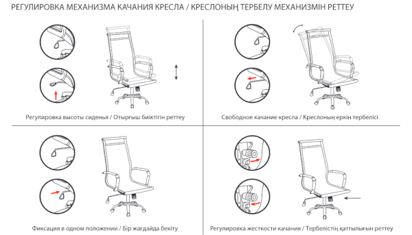 Тип механизма кресла: "топ-ган" качание с регулировкой под вес и фиксацией в 1 положении