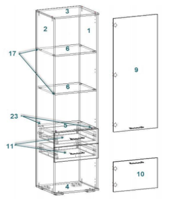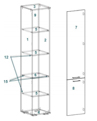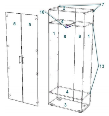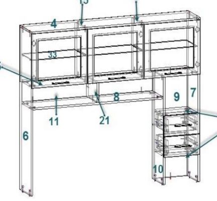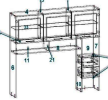 Двухстворчатый шкаф можно дополнить 3-мя полками (приобретаются отдельно) ШхГхВ 766х403х16 мм