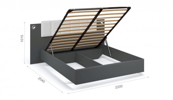 Кровать поставляется с ортопедическим основанием. Кровать со спальным местом 160х200 см возможно оборудовать подъемным механизмом.