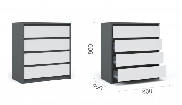 • Массивные удлиненные ручки из МДФ в шкафах и отсуствие лицевой фурнитуры на комодах и тумбах