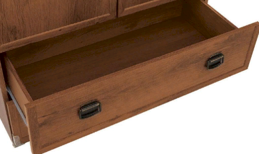 Оригинальный дизайн фасада, точно повторяющий текстуру отполированного дерева отлично впишется в современный интерьер. Дополняет общую композицию необыкновенная форма ручек и закругленные металлические края элементов мебели. В коллекцию Indiana входит большой ассортимент элементов мебели, который поможет создать интересный интерьер в комнате.