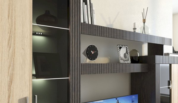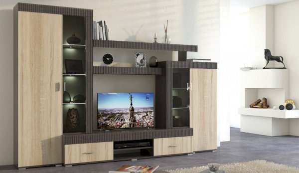 Марк - это готовое решение для гостиной и спальни в современном европейском стиле.Благодаря тщательно продуманной конструкции и правильному подбору цветов, позволяет создать уютную и теплую обстановку для отдыха и содержания дома в порядке.Отличительные особенности: утолщенные линии из рельефного МДФ, тонированные витрины со стеклянными полками, множество места для хранения при небольших размерах.Дополнительно комплектуется светодиодной подсветкой и платяным шкафом.