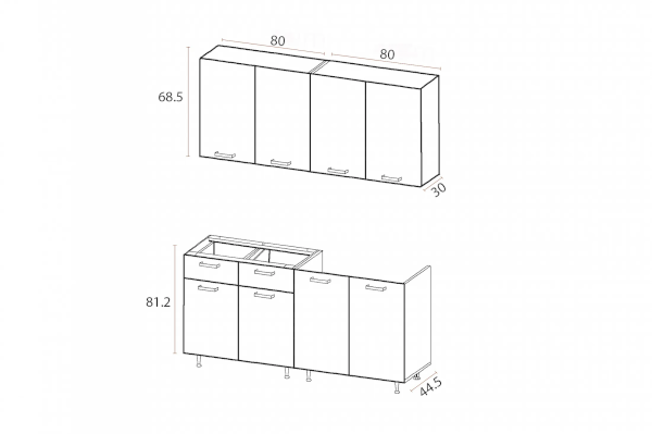 | Глубина нижних шкафов, мм | 600 / 445 |