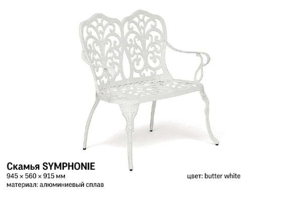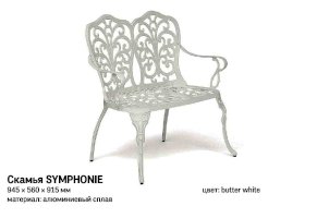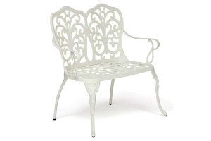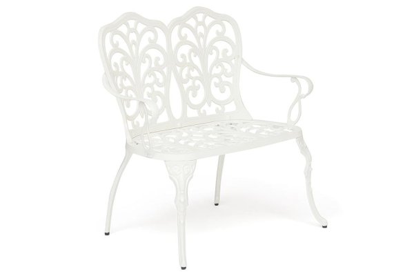 Изысканная садовая скамья Secret De Maison Symphonie из коллекции JARDIN будет прекрасно смотреться в загородном доме, на дачной веранде, отлично подойдёт для отдыха на приусадебном участке. Высокое качество и красота неповторимых ажурных узоров, выполненных вручную, добавит благородства в ваш ландшафтный дизайн, подчеркнет вкус и статус своего владельца. Эргономичная спинка и удобные подлокотники помогут создать уютное и комфортное место для отдыха на свежем воздухе. Эта функциональная, прочная и красивая скамья займет важное место в оформлении вашего сада. Прочный каркас, выполненный из литого алюминия и покрашенный в светлый цвет, надежен, устойчив к любым погодным условиям, способен выдерживать большие нагрузки. Изделие прекрасно сочетается с мебелью из коллекции JARDIN, поставляется в разобранном виде.
