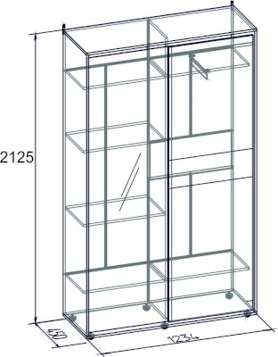 • Размер:ШхВхГ 1234 х 2125 х 450 мм