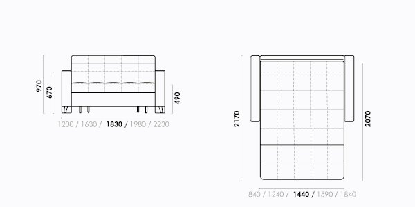 Ширина, мм 1630 / 1830 / 1980 / 2230 / 1230