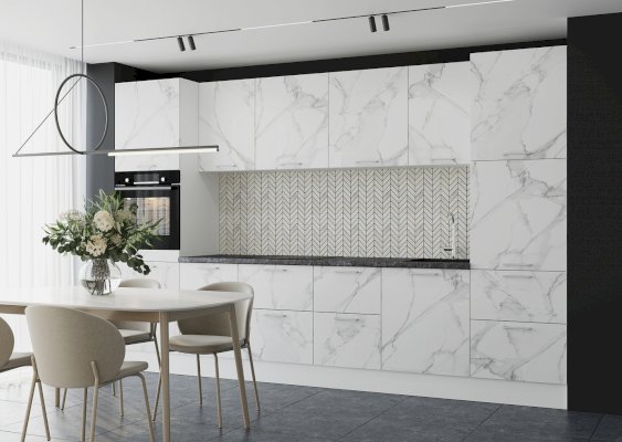 Корпус и фасад поставляются в отдельных упаковках, что дает возможность комбинировать в одной кухне разные фасады.