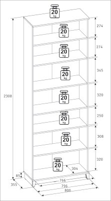 Максимальная нагрузка на полку: 20 кг