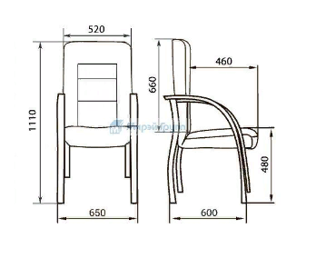 Кресло с высокой спинкой на деревянном каркасе на 4-х ножках.