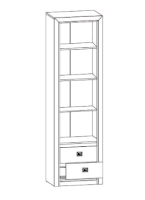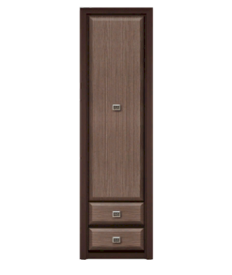 Шкаф с отделениями за распашной глухой дверью. В нижней части расположены 2 выдвижных ящика на металлических роликовых направляющих.