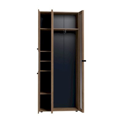 Nature 87 Шкаф для одежды и белья создаст все необходимые условия для хранения в прихожей верхней одежды и аксессуаров. В этом шкафу есть все необходимое для размещения верхней одежды: выдвижная штанга, верхняя полка, ряд регулируемых полок. Большая секция оснащена выдвижной штангой для развешивания пальто и курток на плечиках. Выдвижная штанга выдерживает вес до 10 кг. Один из зеркальных фасадов Контур открывается за ручку-петлю из черной экокожи, второй фасад - за раму. По желанию к модулю можно докупить Nature 94 Дополнительный модуль для Nature 87, который крепится под полку открытой ниши.