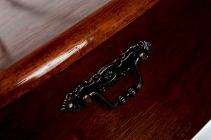 Материал: каркас - металл; столешница, выдвижной ящик, элементы декора - дерево гевея.