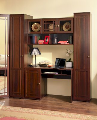 Широкий выбор модулей коллекции SHERLOCK помогает создать уютную гостиную с комфортным рабочим местом, что очень важно для маленькой квартиры. Вместительный 15 Стол письменный можно расположить между шкафами и навесить над ним 4 Шкаф навесной на любой удобной для Вас высоте. 5 Тумба МЦН – отличный вариант не только для хранения вещей, но и для размещения на ней телевизора. Шариковые направляющие тумбы обеспечивают плавность хода выдвижных ящиков. Большой выбор шкафов коллекции SHERLOCK дополнит и то, что 10 Шкаф угловой можно выбрать либо с фасадом Стандарт, либо с фасадом Зеркало. Все фасады модулей коллекции декорированы классическим переплетом из МДФ.