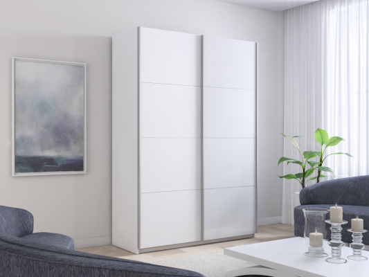 Шкаф-купе 2-х дверный Прайм ДСП/Белое стекло 1400х2300х570 мм