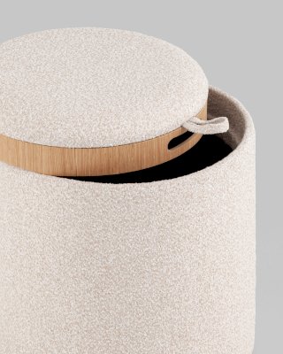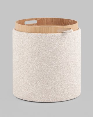 Мягкий пуф с ящиком станет незаменимым украшением интерьера. Он не только удобный, но и функциональный. Благодаря двухсторонней крышке, пуф можно трансформировать в журнальный столик. Столешница выполнена из светлого дерева с бортиками по краям и вырезными ручками для удобства, и безопасности при использовании. Крышка пуфика полностью съемная и при необходимости её можно использовать как поднос. Полезное дополнение - ящик для хранения различных мелочей, внутри обит тканью. Компактный и вместительный, такой пуфик наполнит пространство особым уютом и теплом. Подойдет для любого интерьера - как в классическом стиле, так и в современном.