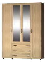 Компактный, но вместительный распашной шкаф с тремя ящиками, за дверью полки для одежды и белья. Вместительные выдвижные ящики полного выдвижения глубиной 400 мм. В двух секциях штанга под одежду.
