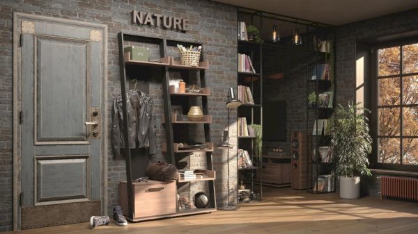 Оригинальная вешалка Nature 77 не займет много места в прихожей, но станет самой яркой деталью вашей входной зоны. Удачная комбинация ЛДСП в декорах Дуб Табачный и Черный является классическим сочетанием современного стиля лофт. Модуль выполняет функции открытой вешалки для верхней одежды и тумбы для обуви. Крепкие металлические крючки способны выдержать нагрузку до 5 кг каждый. Откидной фасад тумбы дополнительно фиксируется при закрывании магнитной защелкой. Регулируемые опоры позволят компенсировать незначительные неровности пола.