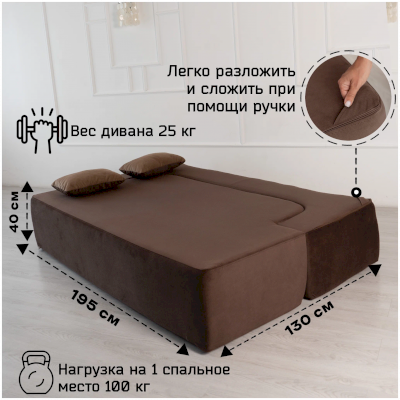 За счет того, что диван без каркаса и механизма, его легко самостоятельно перевезти, например на дачу. И в отличие от всех стандартных диванов, он не требует сборки. Такого набора достоинств нет ни у одного обычного дивана!