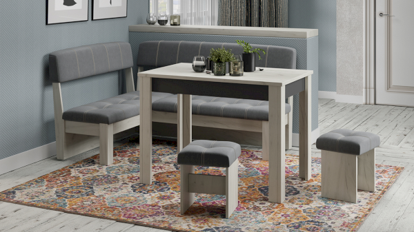 Кухонный уголок «Альфа» представляет собой полноценное функциональное и удобное место для размещения большого количества человек за одним столом. Это классический уголок, разработанный с учётом современных тенденций. За счёт удобства и уюта он станет главной частью кухни, где захочется проводить больше времени.