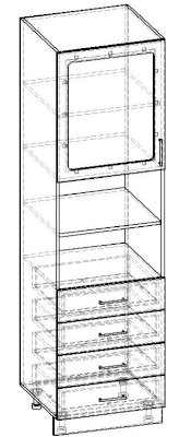 Пенал под второйку для духовки витрина 600х570х2134 600х570х2134 600х570х2134