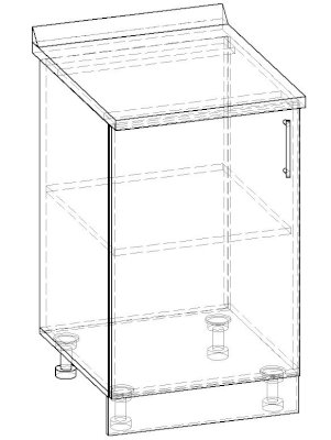 • Пристеночный плинтус (пластиковый со вставкой) - входит в стоимость модуля и изготавливается в цвет столешницы.