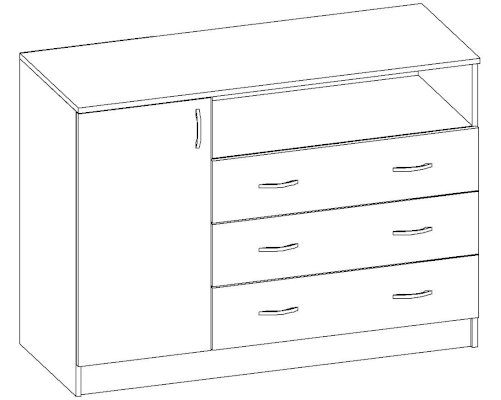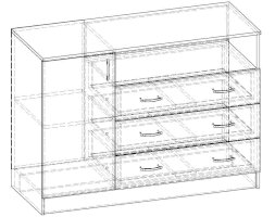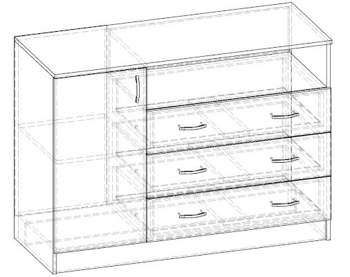 - Корпус, полки и фасады изготовлены из ЛДСП 16 мм с кромкой ПВХ 0,4 мм.