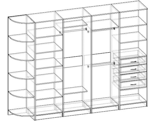 Вы можете выбрать любой цвет корпуса из представленных ниже вариантов цветов ЛДСП.Также вы можете собрать cами свою гардеробную Alex