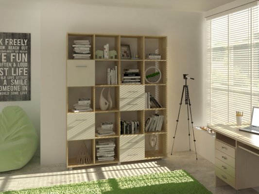 Данное изображение представлено в следующих цветах ЛДСП: корпус - Дуб Сонома, фасады - Ваниль.
