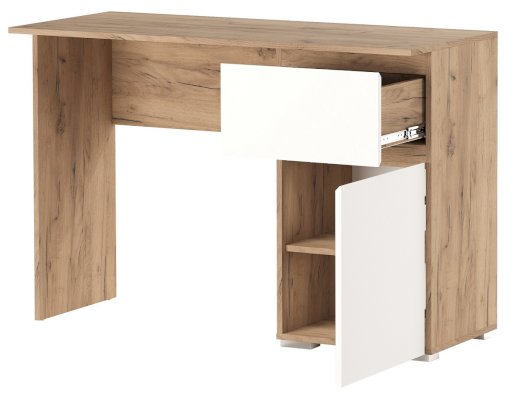 Крышка стола и фасады обработаны кромкой толщиной 1 мм, что делает работу за столом более комфортной и удобной. Применение интегрированной ручки на фасадах делает модель стильной и безопасной – дверцы открываются за профилированные выступы. Черная регулируемая ножка-опора.