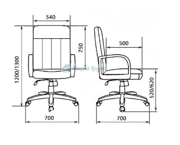 Кресло с высокой спинкой, с подлокотниками прямоугольной замкнутой формы с мягкими накладками обитыми в цвет кресла.