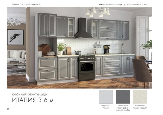 Модульный кухонный гарнитур Италия софт графит с патиной серебро (Террикон) - за 83 298 руб. в Троицке. Купите на сайте troick.onlinemarketmebeli.ru или по телефону 8(800)505-30-63 уже сегодня! Уточнить наличие, комплектацию, актуальную цену можно бесплатно у менеджера ежедневно. Закажите Модульный кухонный гарнитур Италия софт графит с патиной серебро (Террикон) до конца акции! Доступна покупка в кредит, рассрочку. Доставим со склада или на заказ.