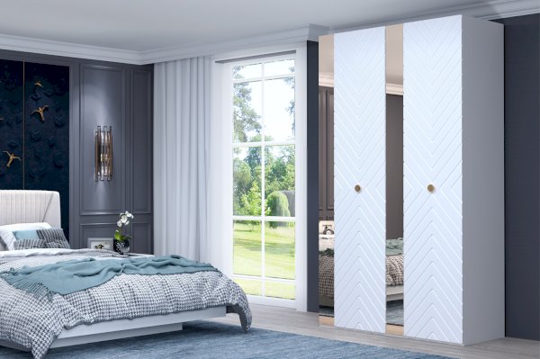 Представляем вашему вниманию вместительный и функциональный распашной шкаф. По сути модель является двухдверной, однако, за счет вставок украшенных зеркалом ширина модуля составляет 1400 мм и обеспечивает его отличную вместительность.