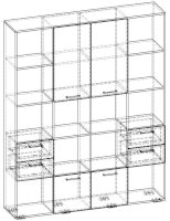 Применение задней стенки из ЛДСП (в ячейках с ящиками и фасадами) позволяет использовать данный стеллаж для зонирования пространства (чтобы предотвратить опрокидывание, необходимо обеспечить крепление стеллажа к стене).
