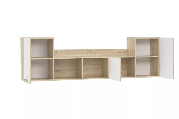 Полка НМ 011.39-01 М сделает рабочую зону в детской еще более функциональной. Модуль состоит из трех закрытых отделений и двух открытых ниш. В боковых отделениях предусмотрена полка для размещения книг. Открытые ниши подойдут для размещения декора, фотографий или игрушек.