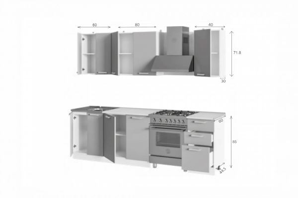 | Глубина нижних шкафов, мм | 600 / 506 |