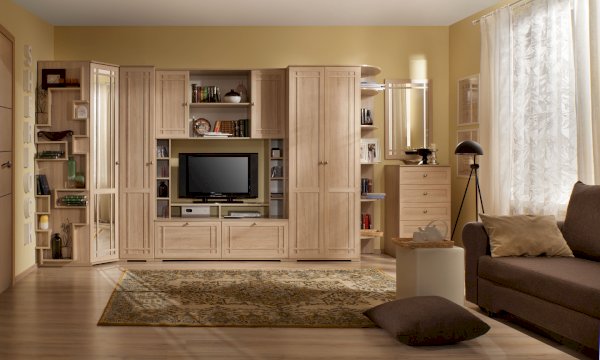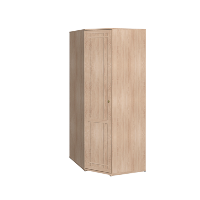Используйте углы в комнате рационально! Угловой шкаф оснащен стационарной штангой длиной 81 см, полочками для белья и автоматической подсветкой, которая включается, если шкаф открыт. Фасад углового шкафа изготавливается только в исполнении «левый» (определяется по расположению петель). По своим габаритам угловой шкаф подходит для компоновок глубиной 590 мм.
