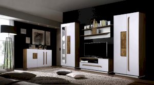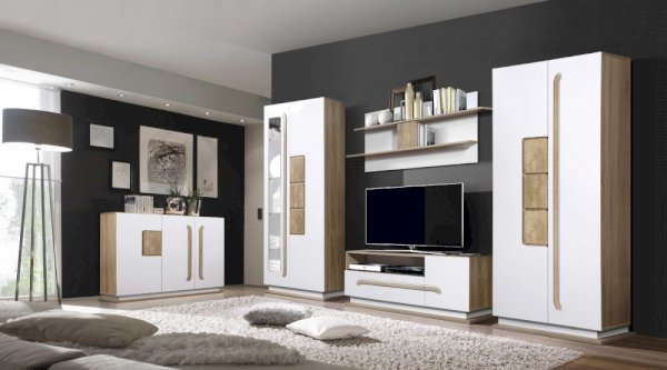 Тумба для теле и радиоаппаратуры 30.04 - 02 "Дора"/(дуб сонома / белый / ДВПО: белый / ПВХ белый глянец снег)