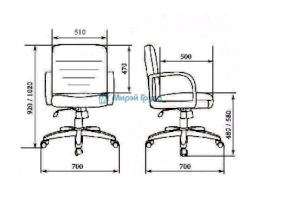 Кресло с низкой спинкой, с подлокотниками дугообразной не замкнутой формы с мягкими накладками обитыми в цвет кресла.
