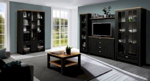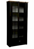 Комбинированный шкаф – любимец женщин, потому что, в зависимости от поставленной задачи, он может превратиться в буфет, в витрину, библиотеку – в общем, абсолютно универсален! Четыре полки за стеклянными дверцами и одна закрытая выдвижная позволяют поместить внутрь все задуманное. Это может быть посуда, книги, сувениры – все, что хочется продемонстрировать, ведь все за стеклом! И лишь в выдвижном ящике можно спрятать то, что не предназначено для всеобщего обозрения. Каждая из полок выполнена из ЛДСП и выдерживает вес до 5 кг. Фасадная профильная вставка и контрастный карниз наверху украшают модуль, делают его интересным и неординарным. Рамочная конструкция придает не только красоту и законченность внешнему виду, но также несет практический функционал. Она укрепляет изделие по периметру, делает его более прочным и удлиняет заявленный срок службы.