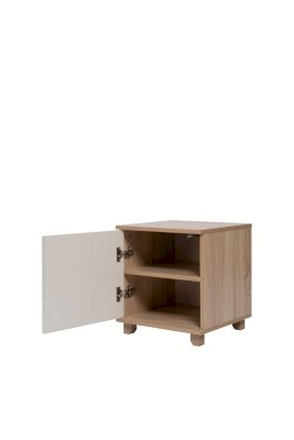 Данная модель имеет закрытую створкой нишу с двумя полками. Створка закреплена на петли с доводчиками для плавности хода и бесшумного закрывания. Для удобного открывания тумба оборудована механизмом «push-to-open».
