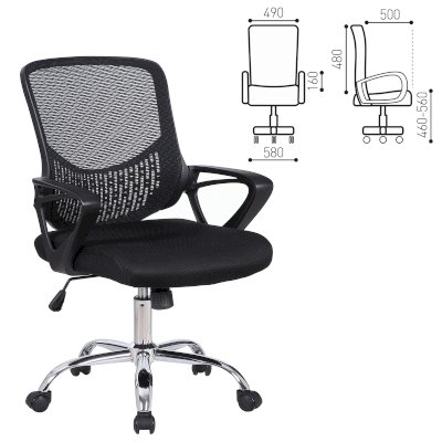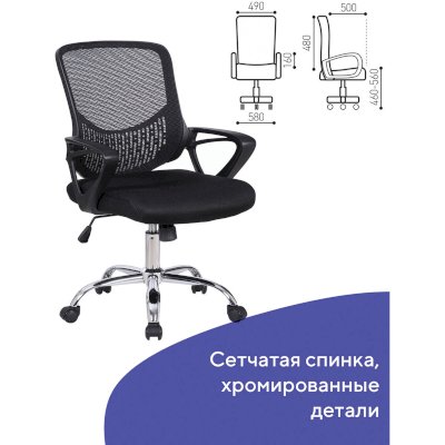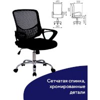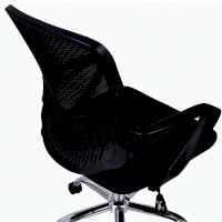 Спинка кресла выполнена из прочного сетчатого акрила с оригинальным "узором". Материал обладает высокой воздухопроницаемостью, легко чистится, способен подстраиваться под физиологические изгибы спины, при этом сохраняет форму и не растягивается. Залогом комфортного использования кресла также является эргономичная форма надёжного пластикового каркаса.